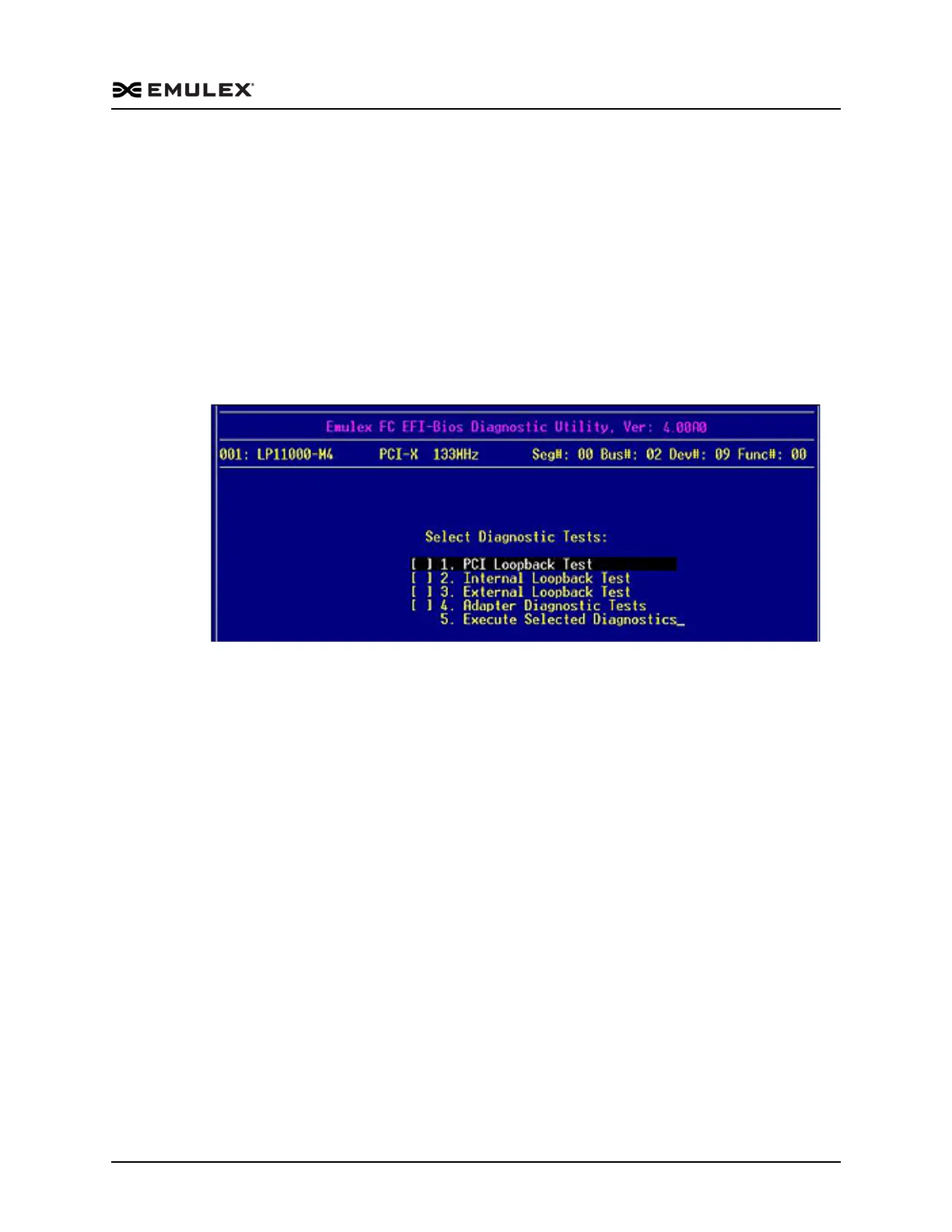 3. Highlight <5>. Execute Selected Diagnostics. Press <Enter>. The selected tests run.