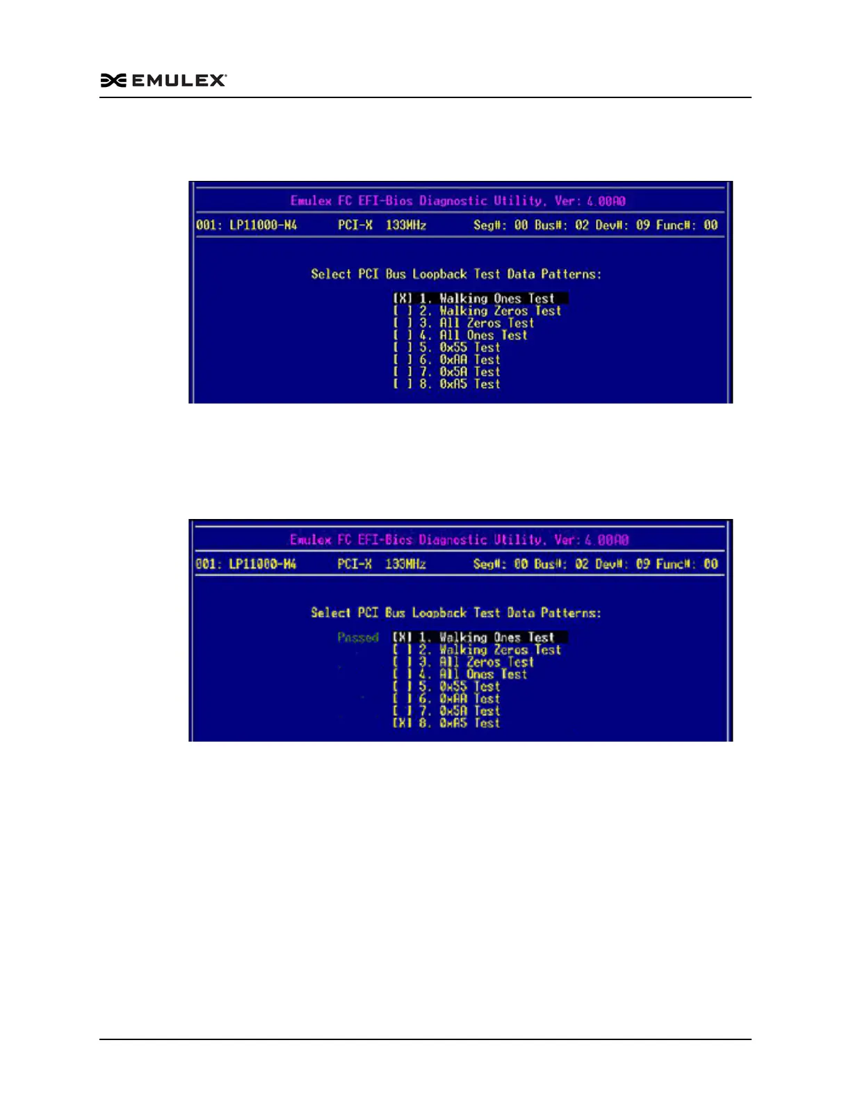 Figure 8-4 PCI Loopback Test Data Patterns Menu