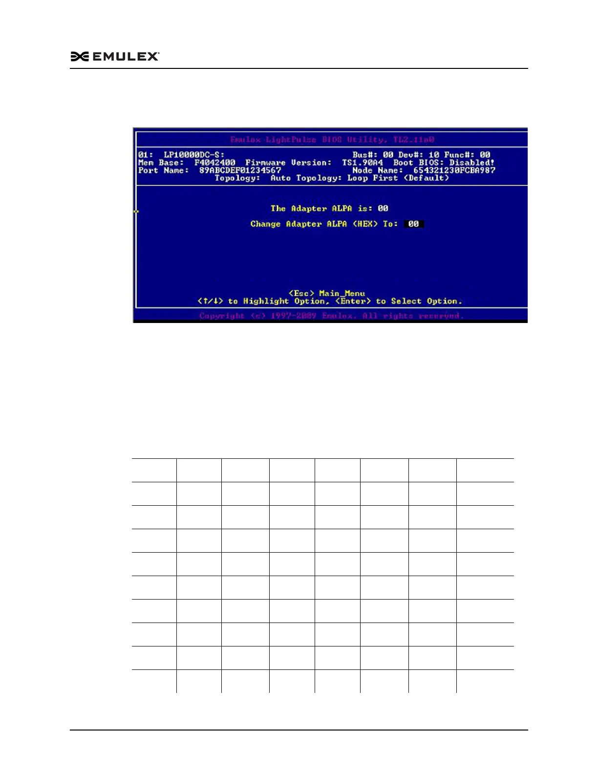 Note: If the adapter's ALPA is changed, it does not show on the NVRAM ALPA