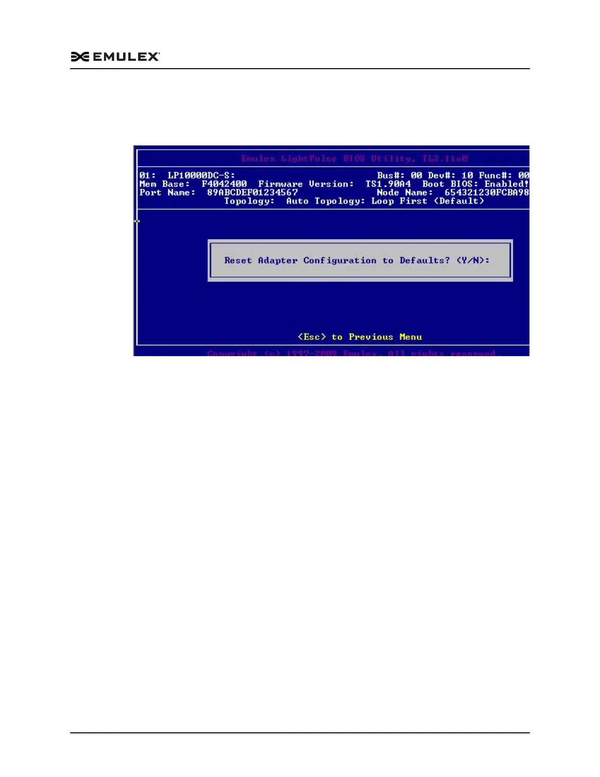 1. On the main configuration menu (Figure 4-2) select Reset Adapter Defaults. A
