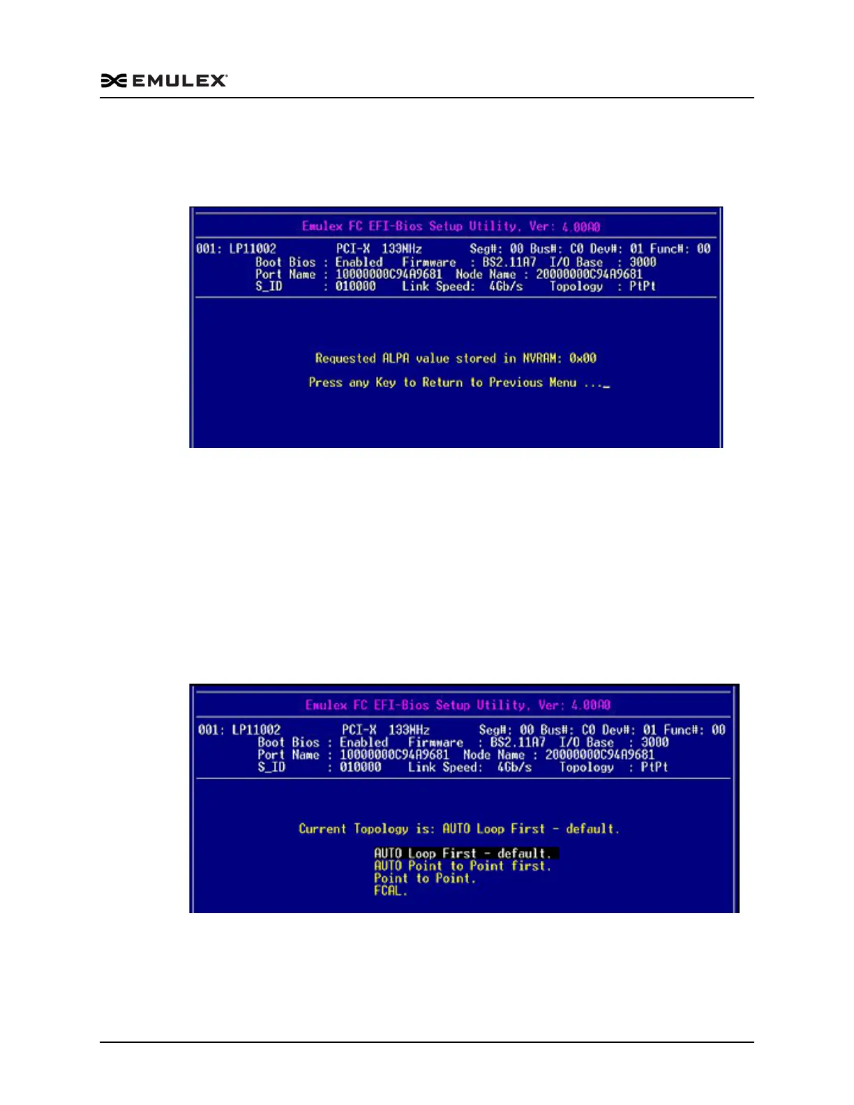 Emulex drivers support arbitrated loop and point-to-point topologies.