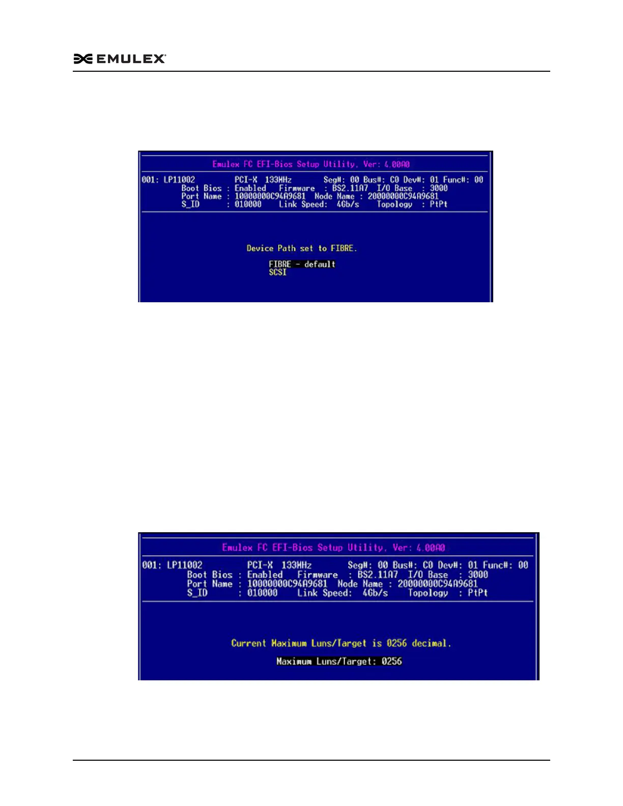2. Use the up/down arrows to change the maximum LUN value (between 1 and 4096)