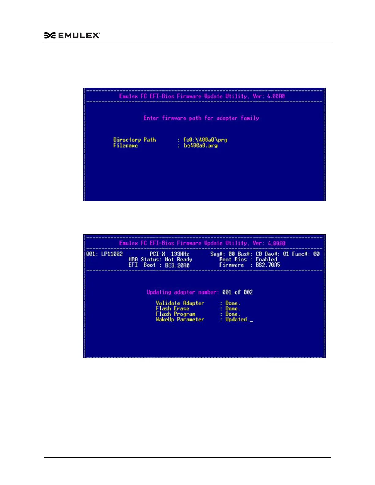 The boot code update begins on the first adapter. Information similar to Figure 6-44