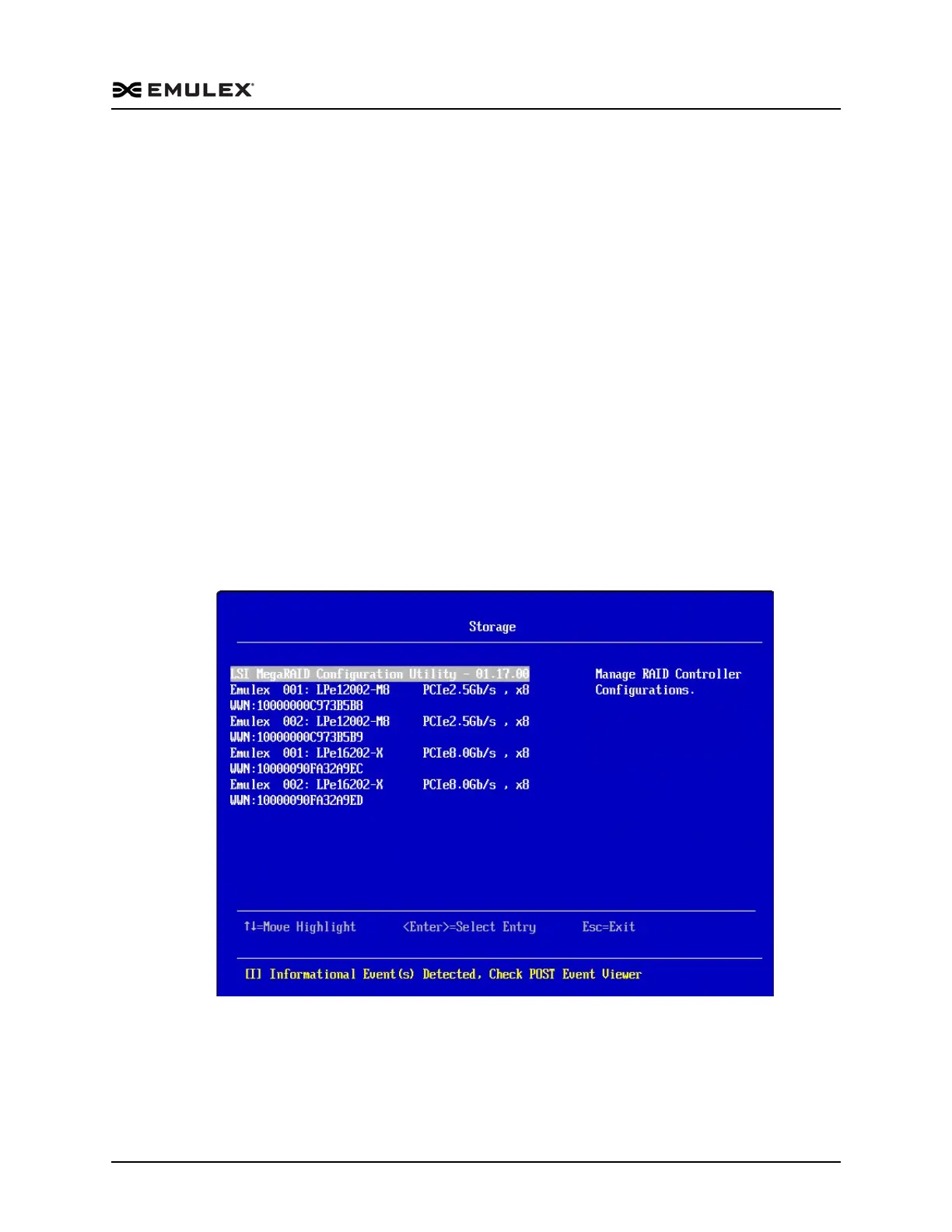 1. From the System Storage screen, select the Emulex HBA port and press <Enter>.