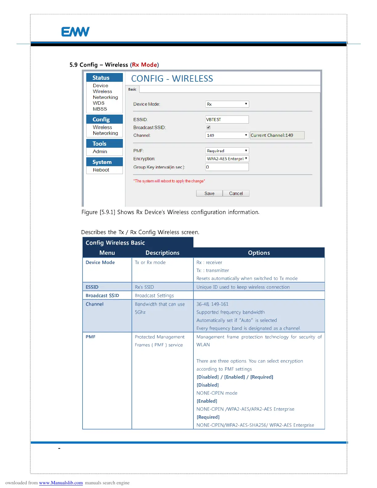 Figure [5.9.1] Shows Rx Device’s Wireless configuration information.