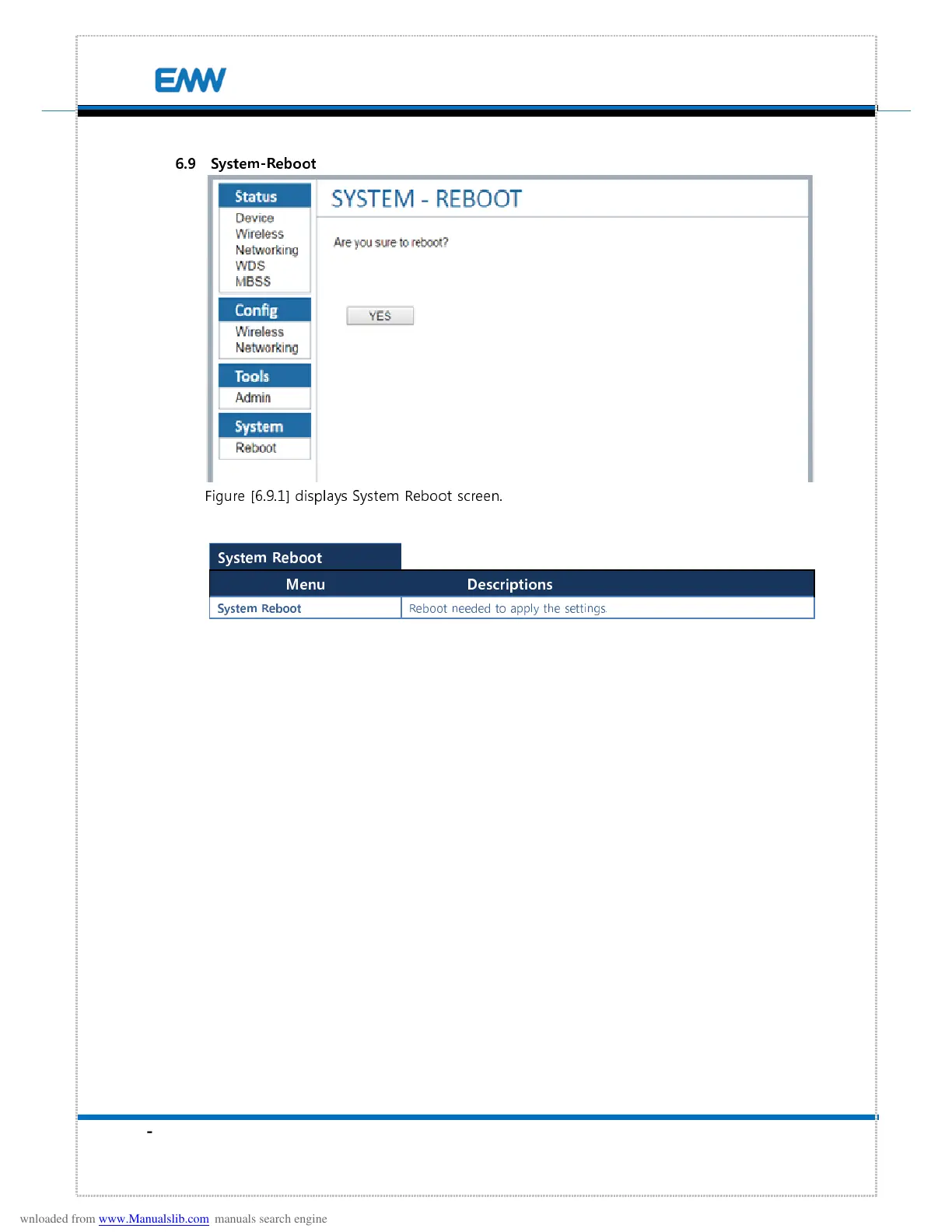 Figure [6.9.1] displays System Reboot screen.