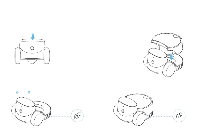 3. 機器人頭部機械按鍵: 按下後可以在APP內呼叫主人 (2 將配件對準限位槽後放入請確保配件下方與主機接觸點位無障礙