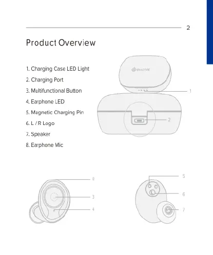 ENACFIRE E60 - Product Overview; Charging Case Components; Earphone Components and Controls