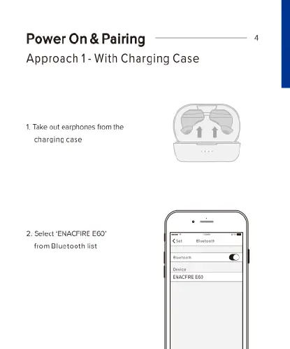 ENACFIRE E60 - Power On and Pairing; Pairing with Charging Case