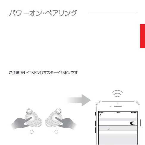 パワーオイヤホンは電源オフ状態で、源ボンを2秒ぐらいタチすと、「パワ