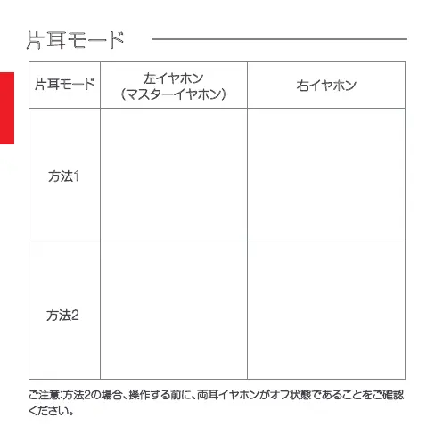 ご注意方法の場合、操作す前に両耳イヤホンフ状態であることご確認