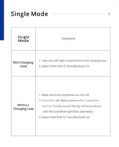 ENACFIRE F2 - Single Earphone Mode