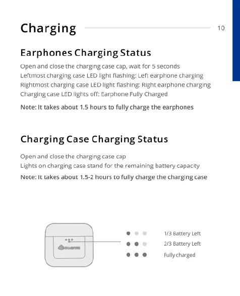 ENACFIRE F2 - Charging Instructions; Earphone Charging Status; Charging Case Status