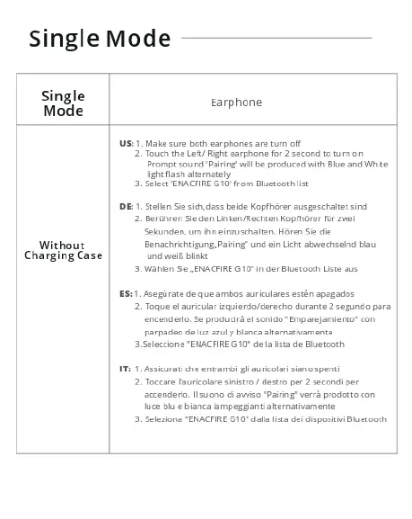 ENACFIRE G10 - Single Earphone Mode; Using Without Charging Case