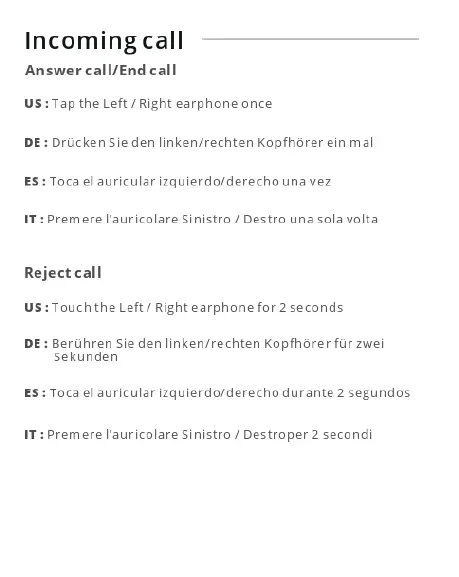 ENACFIRE G10 - Incoming Call Management; Answer or End Call; Reject Incoming Call