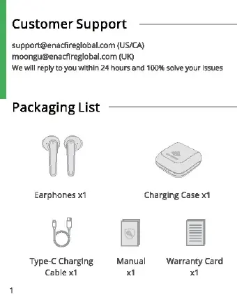 ENACFIRE GEEK - Customer Support; Packaging List