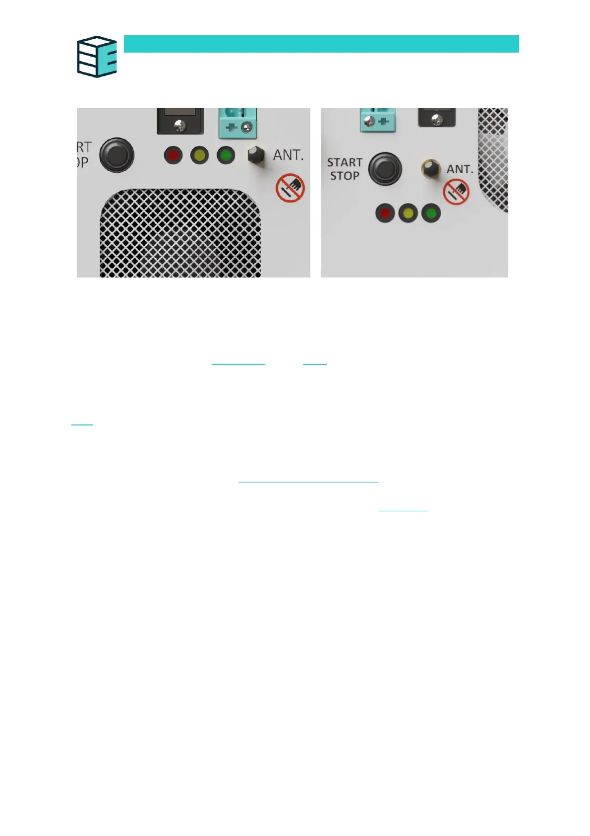 The three LEDs located next to the right handle on the front panel and help to indicate the device