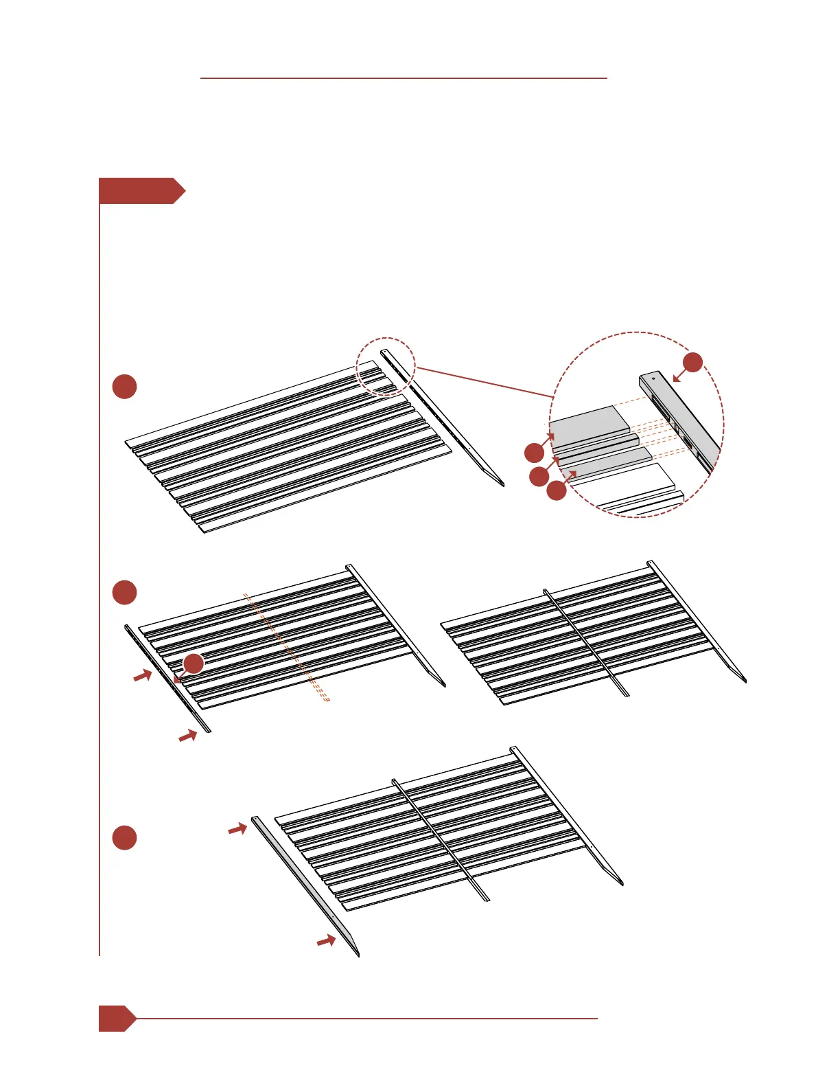 1. Slide (6) Wide Slats (C), (5) Square Slats (B), and (5) Thin Slats (A) into the routed holes in