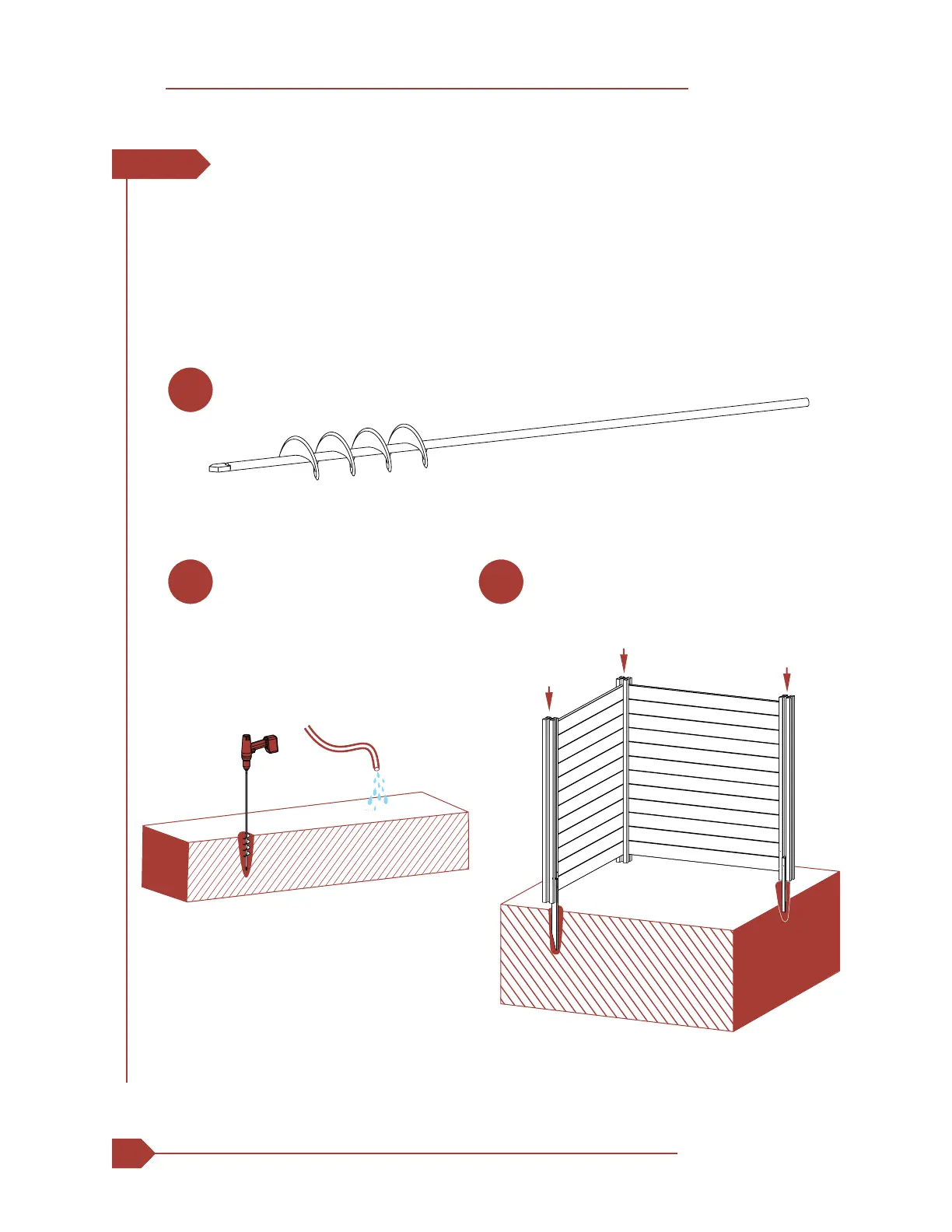 b 2. Drill a hole about 12” to 16” deep at the desired locaon, and ll the holes