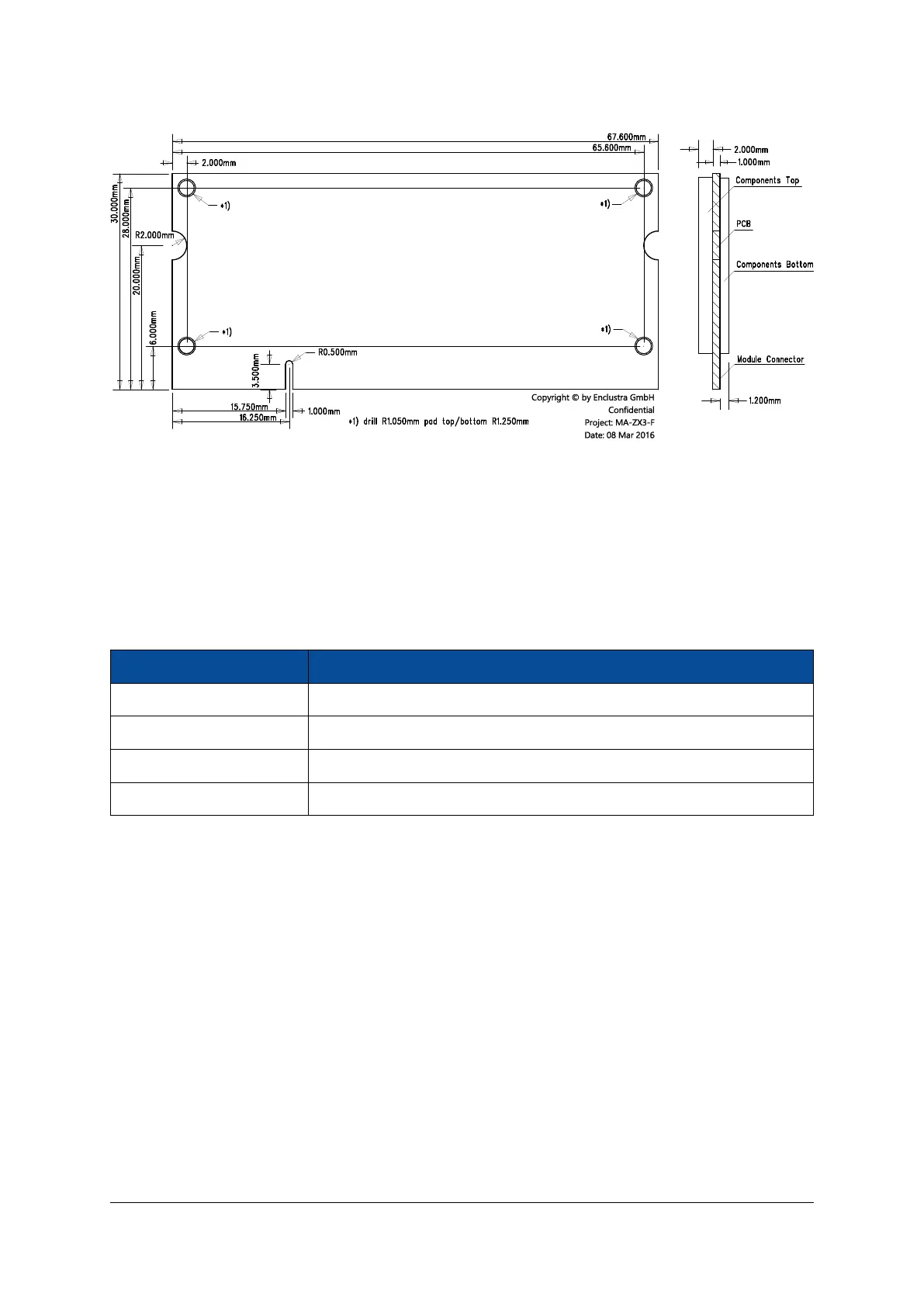 The footprint of the module connector is available for different PCB design tools (Altium, Eagle, Orcad, PADS)