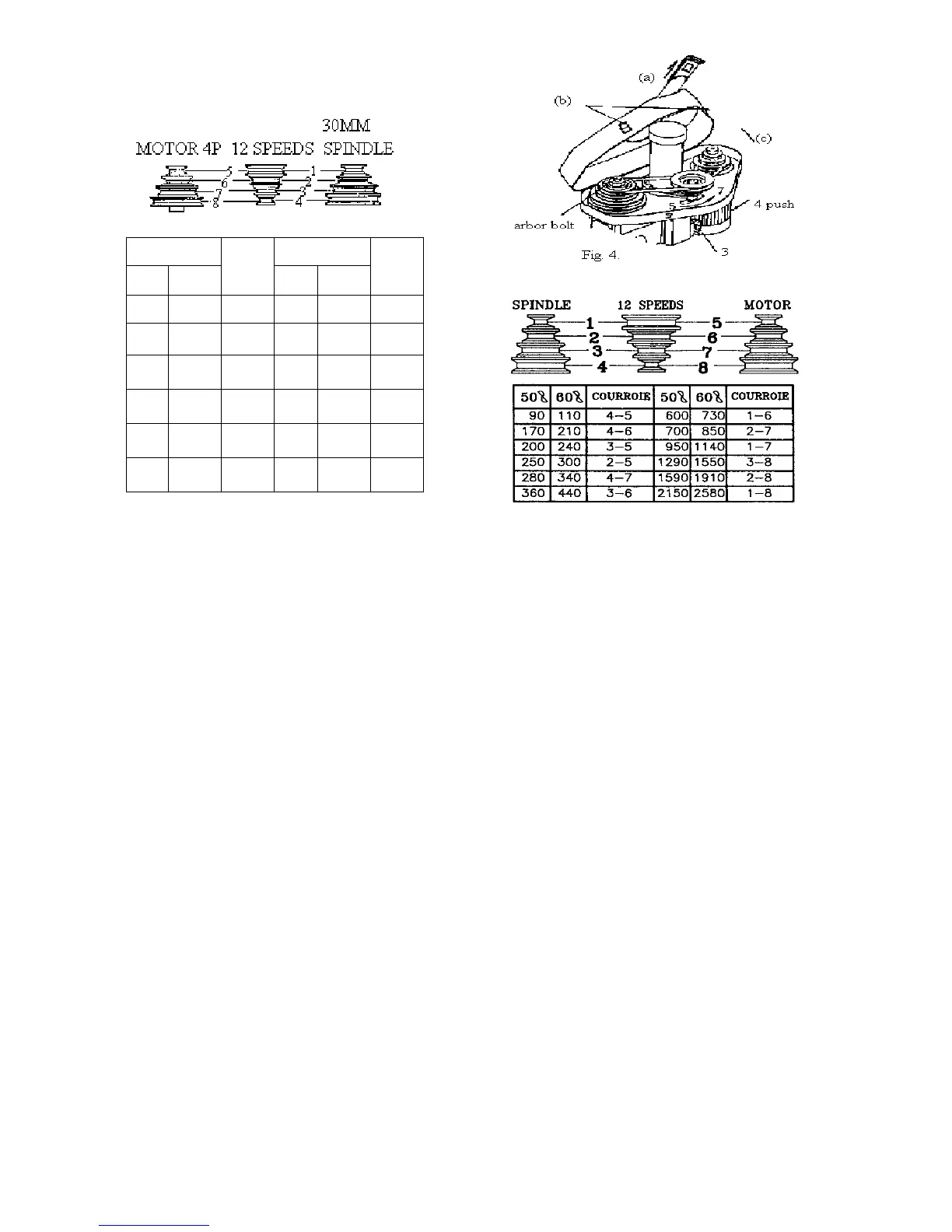 Loosen the arbor bolt (see fig. 4) at the top of the spindle shaft approximately 2 turns with a