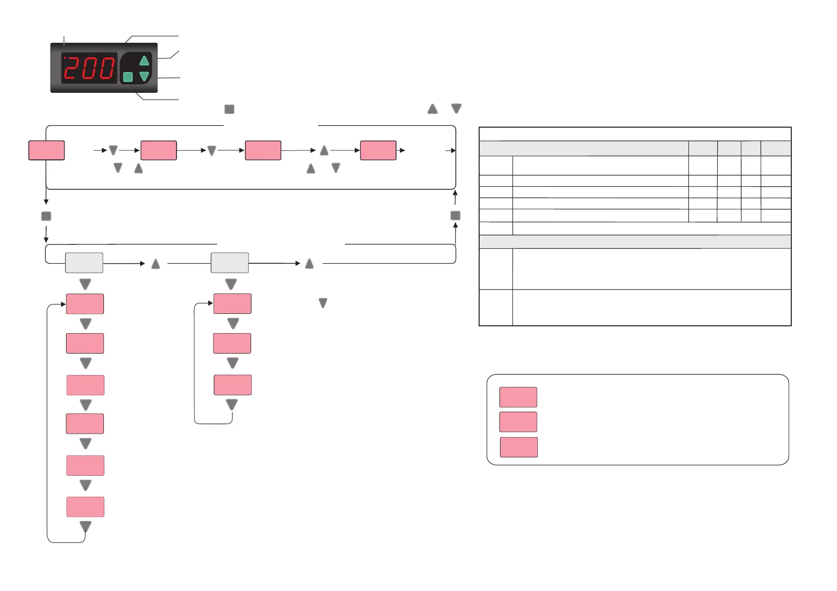 Used for selecting parameters and decreasing the setpoint value in the programming mode and for decreasing