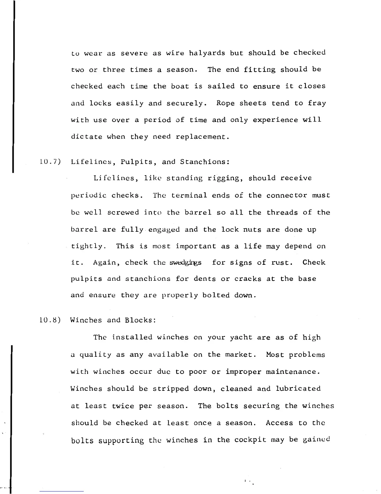 ENDEAVOUR 37 - Lifelines, Pulpits, and Stanchions; Winches and Blocks Maintenance