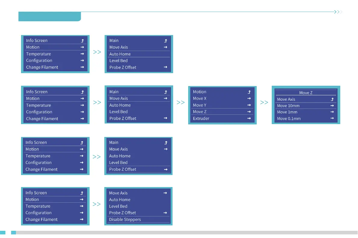 6.2 Info screen → Motion → Move Axis → Move Z. (Adjust the value to 0)