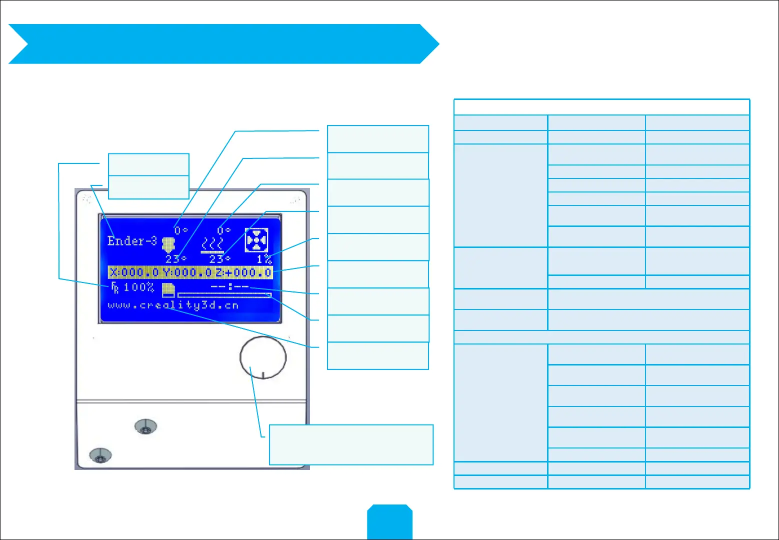 Ender 3 Series - 2. Understanding the Printer Screen; Printer Displayed Information; Navigating the Screen Menu
