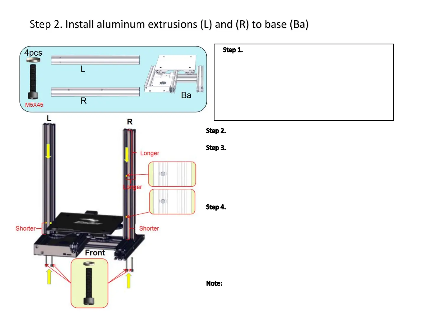 correctly. , Using M5x45 screws and washers, pass them through