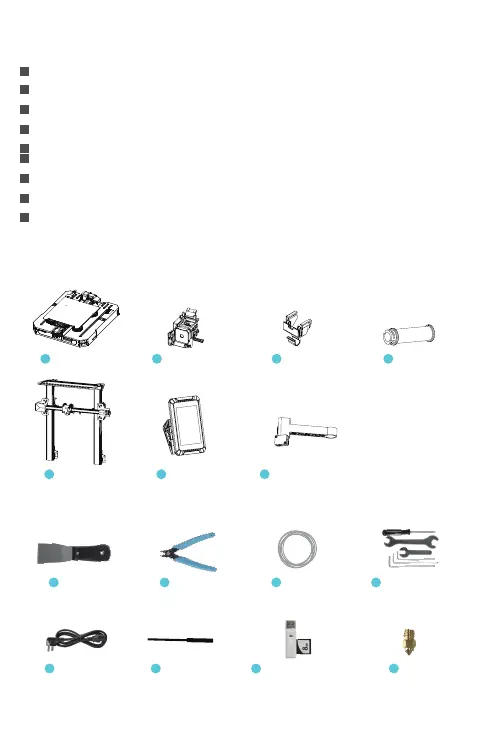 Chassis Module x 1 Nozzle Kit x 1 Wire Clamp x 1 Filament tube x 1