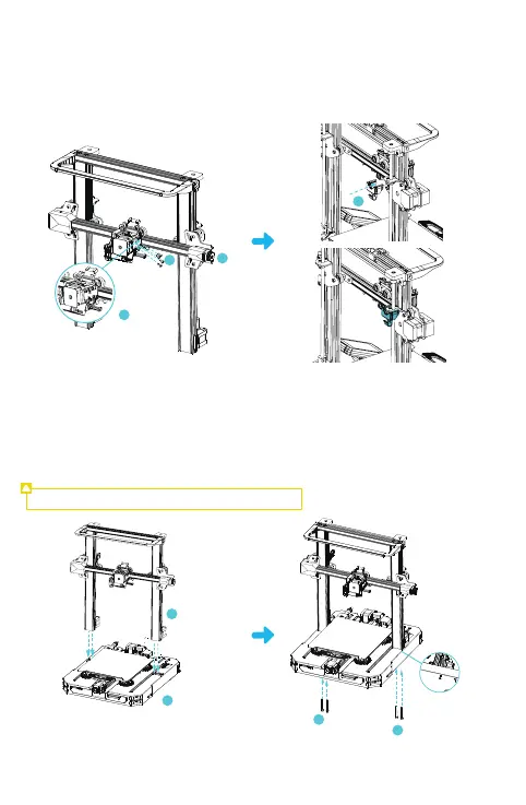 B.Place the gantry in the slot of the chassis, and pre-lock it with two M5x45 hexagon socket round screws with