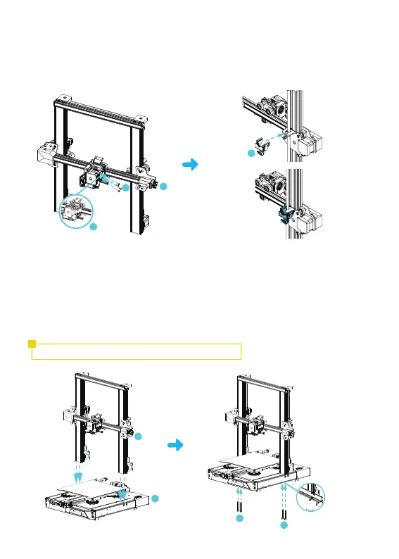 A. Place the nozzle assembly on the mounting back panel of the extruder, pre-lock with four M3x6 hexagon