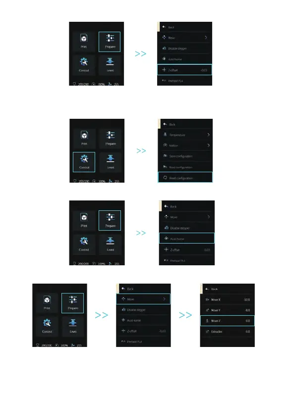 4. Enter “Prepare→Z-offset”, adjust the Z-axis compensation value so that the height from the nozzle to the
