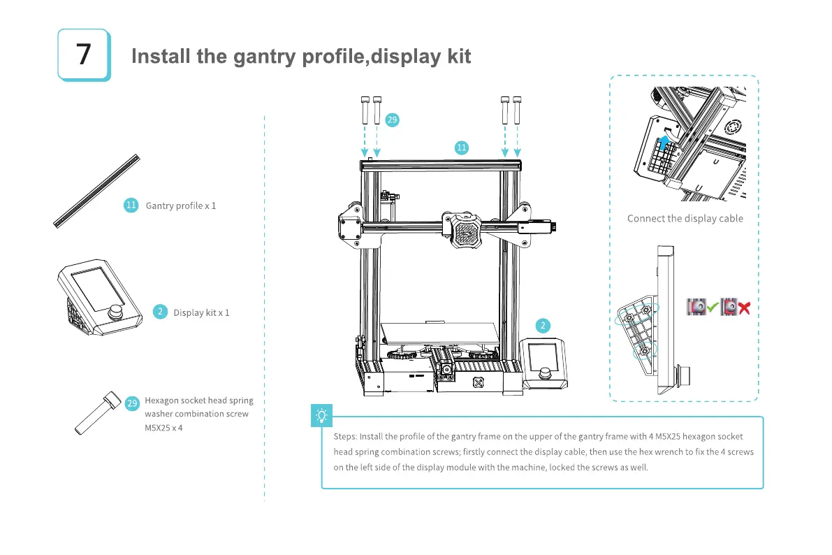 Ender Ender-3 V2 - Gantry Profile and Display Module Installation