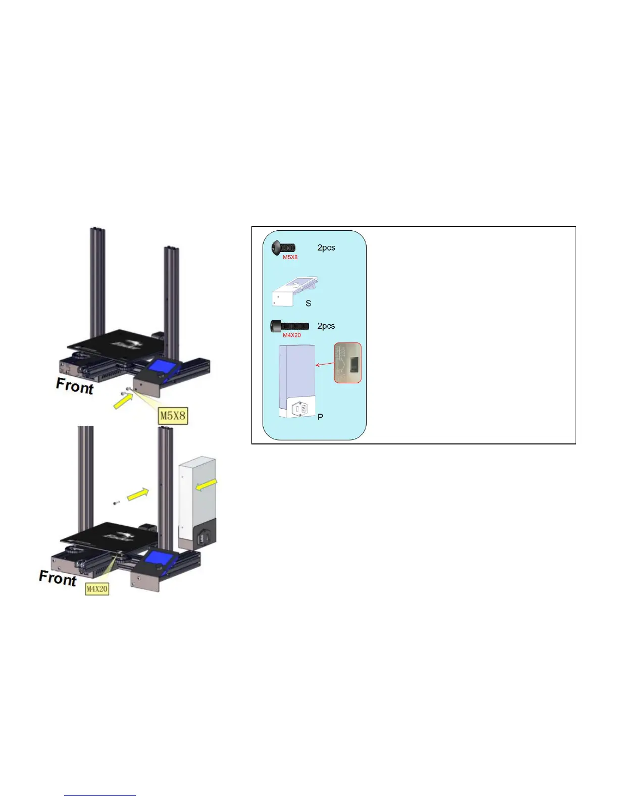 secure with M5x8 screws, and use the Allen key to tighten them.