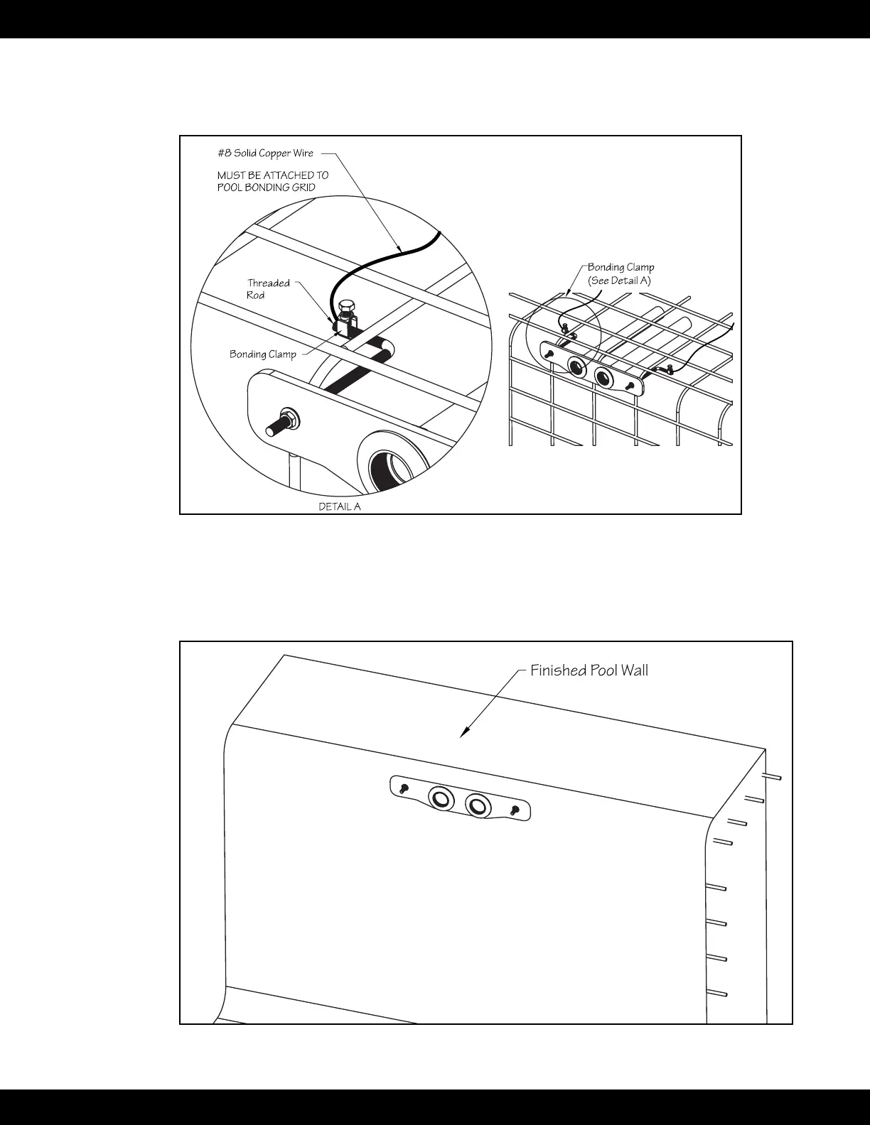 The threaded rods must be tied into the pools bonding grid. Secure a bonding clamp to each threaded rod. Attach a #8