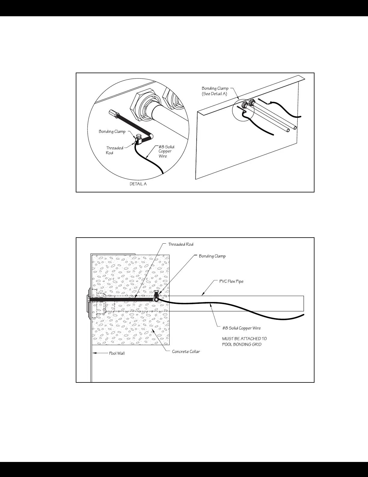The threaded rods must be tied into the pools bonding grid. If using rebar in the pools concrete collar,