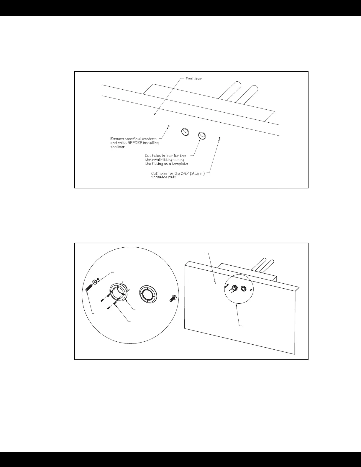 washer and thread each stud into the 3/8" (9,5mm) holes in the liner/pool wall making sure the rubber
