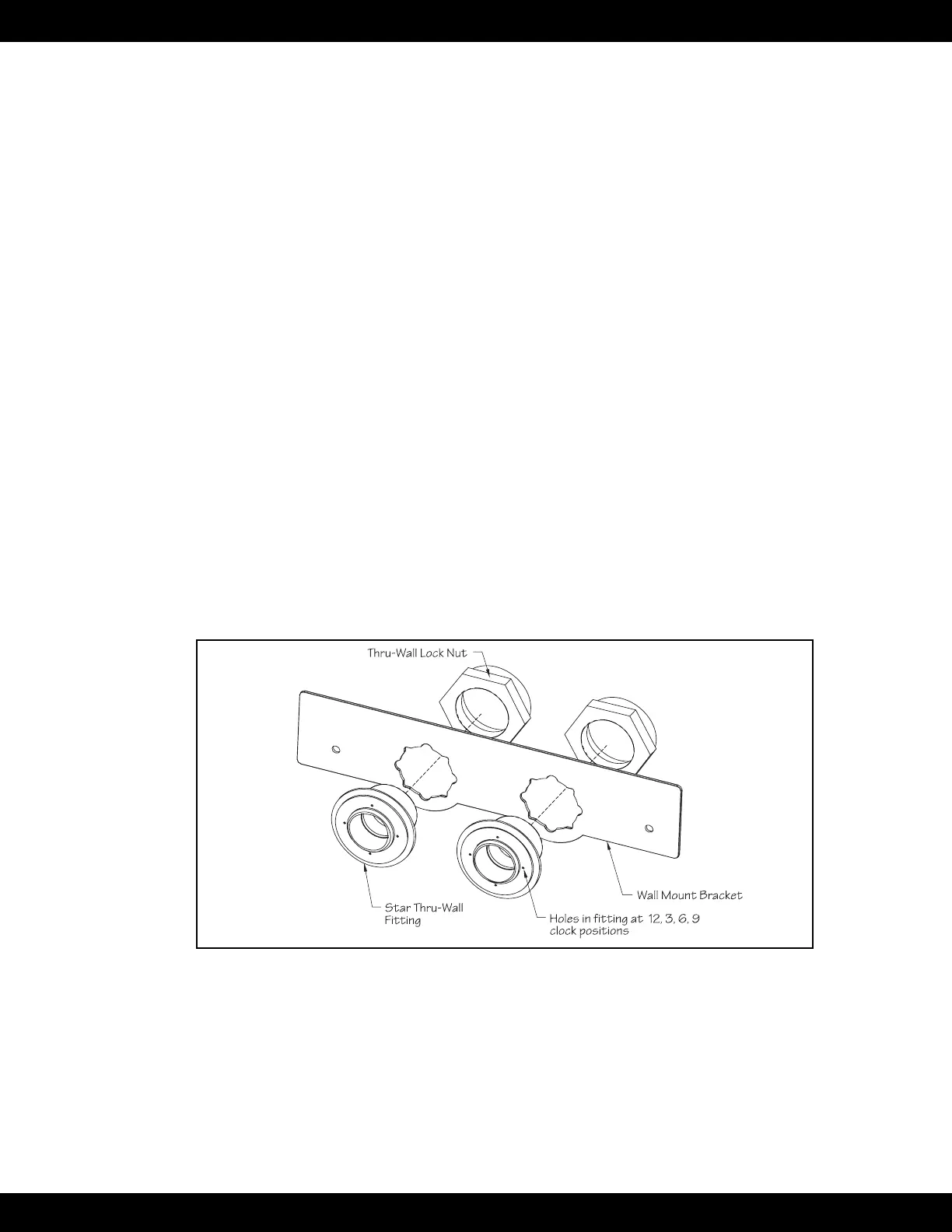 Install the star thru-wall ttings in the cutouts of the wall mount bracket making sure the holes in the t-