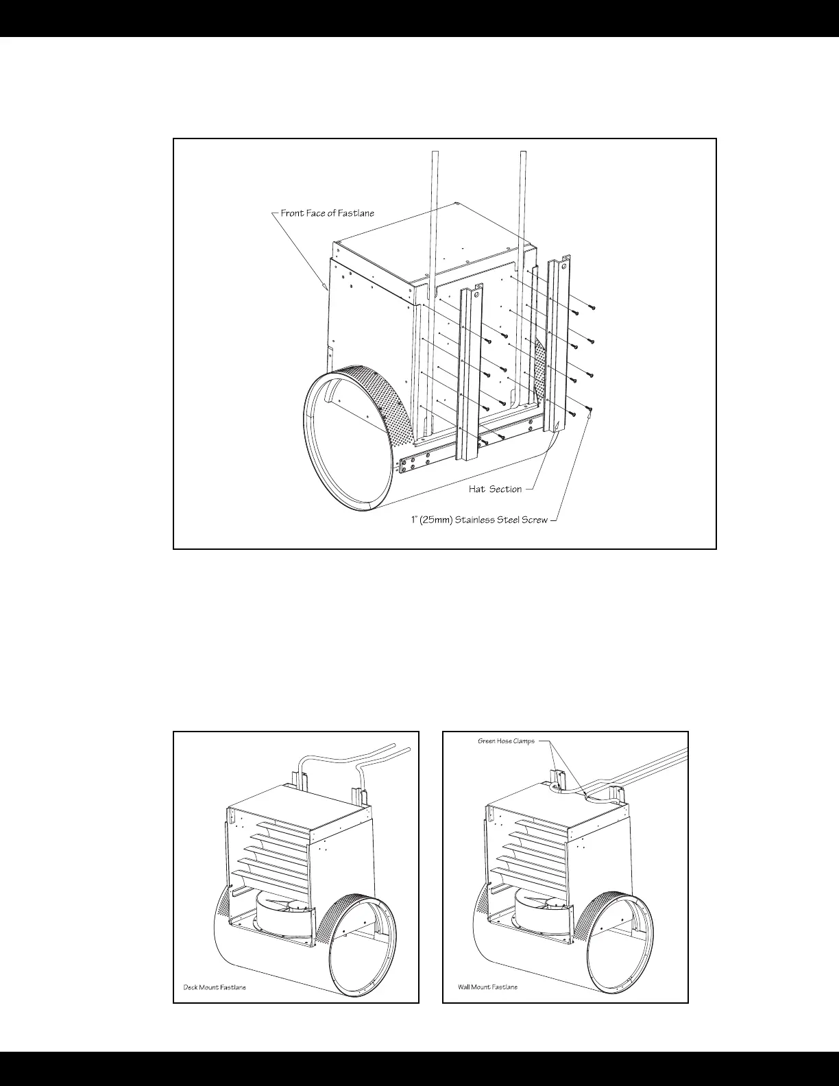the end of the hat section is facing up. Use the provided 1" (25mm) stainless steel screws to attach the