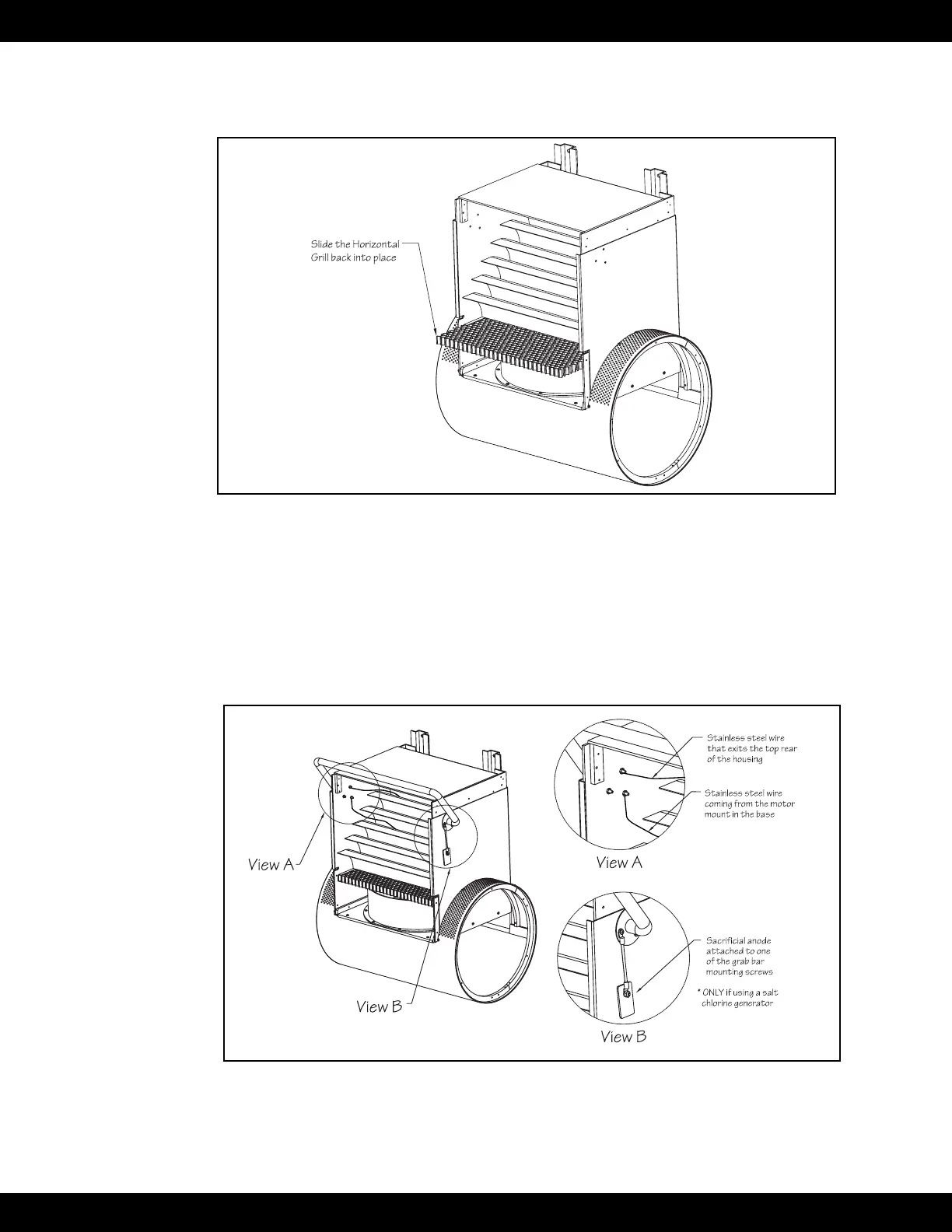 lock nuts. Feed the stainless steel wire attached to the motor mount up through the horizontal grill.