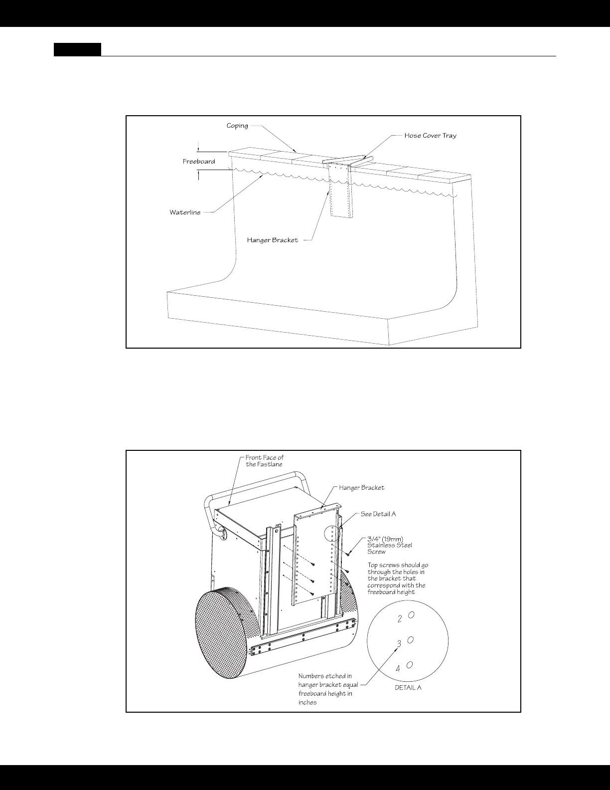 the housing with appropriate number hole in the hanger bracket (if the freeboard is 6" (15,2cm) then