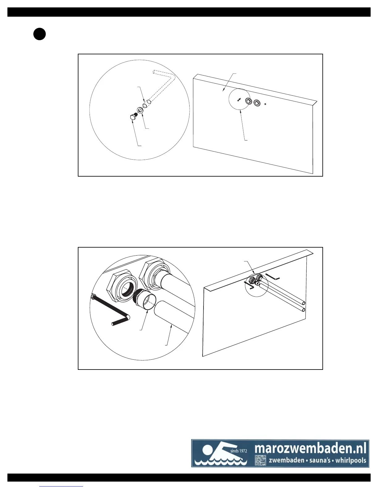 On the inside of the pool, thread the sacricial 3/8" (9,5mm) steel (with rubber washer) and bolt into the