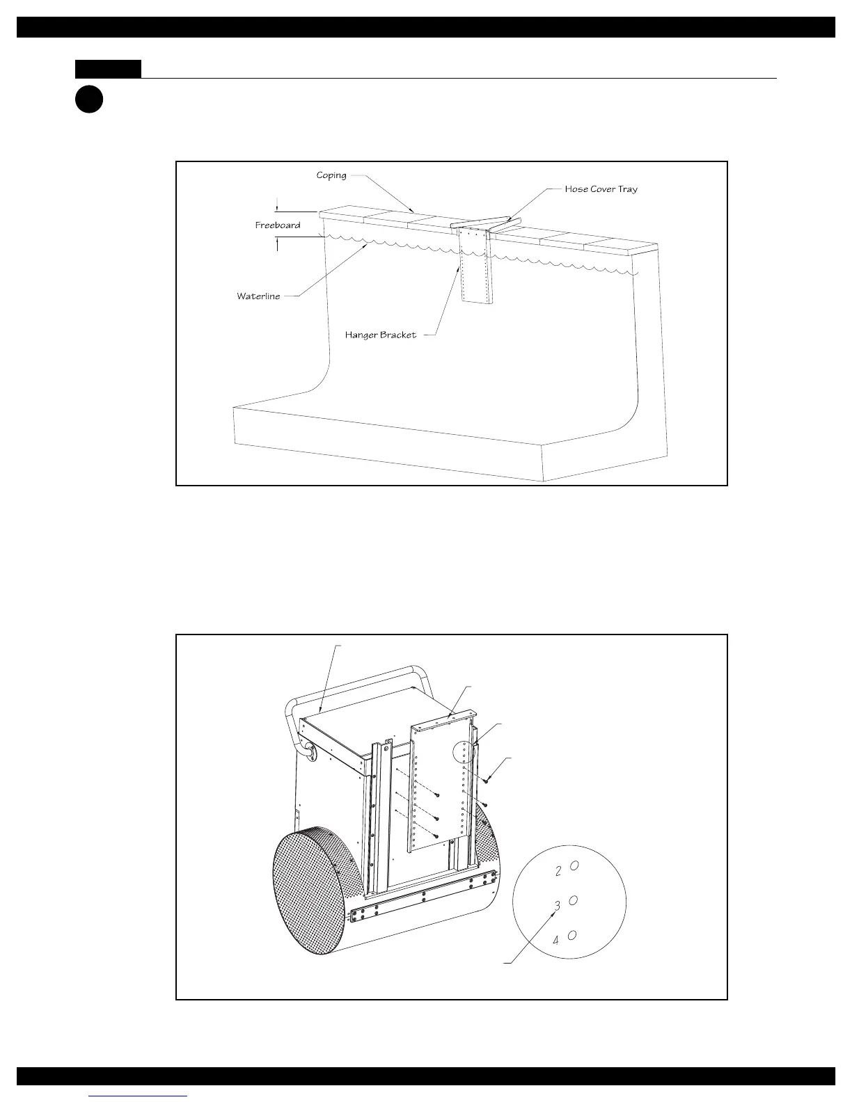 9.1 Loosely secure the hanger bracket to the hose cover tray with one of the provided 1/2" (12,7mm) stain-