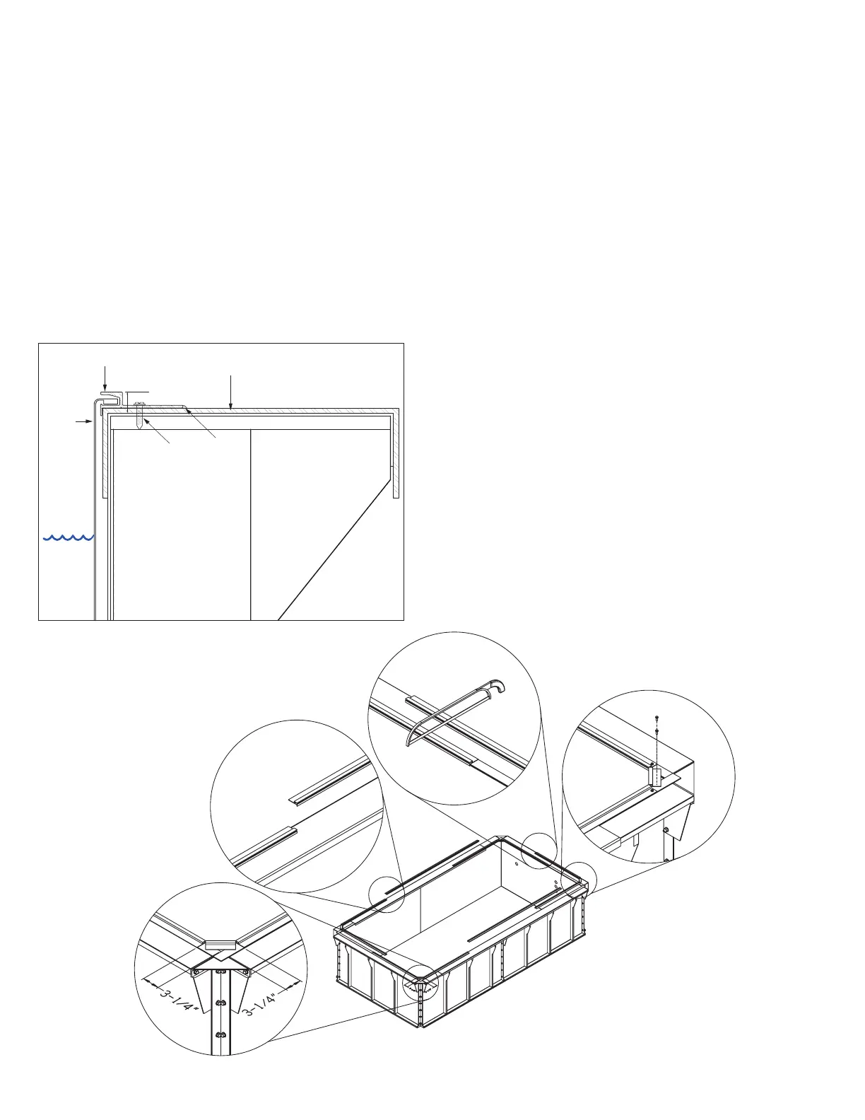 collecting on the top flange of the pool panel can work
