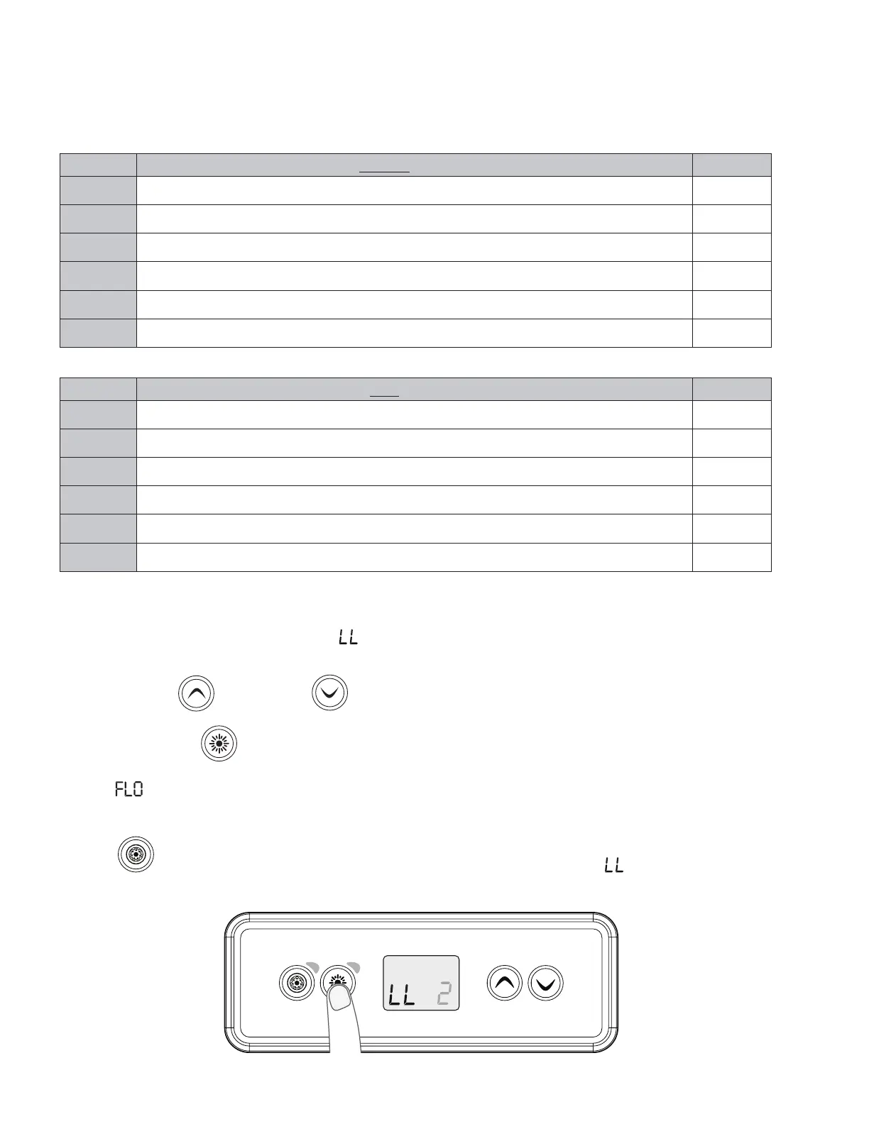 2. Use the Up Button or Down Button on the keypad to toggle to the appropriate Low-Level.