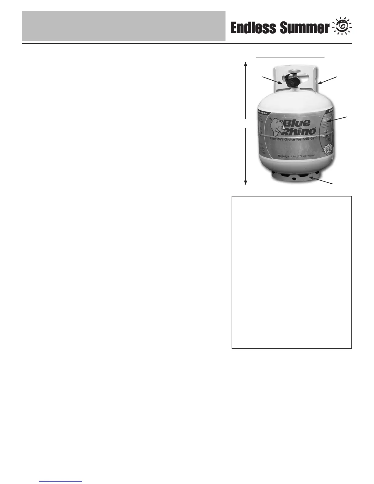 • Use only Department of Transportation (DOT) approved “20 lb.” LP gas