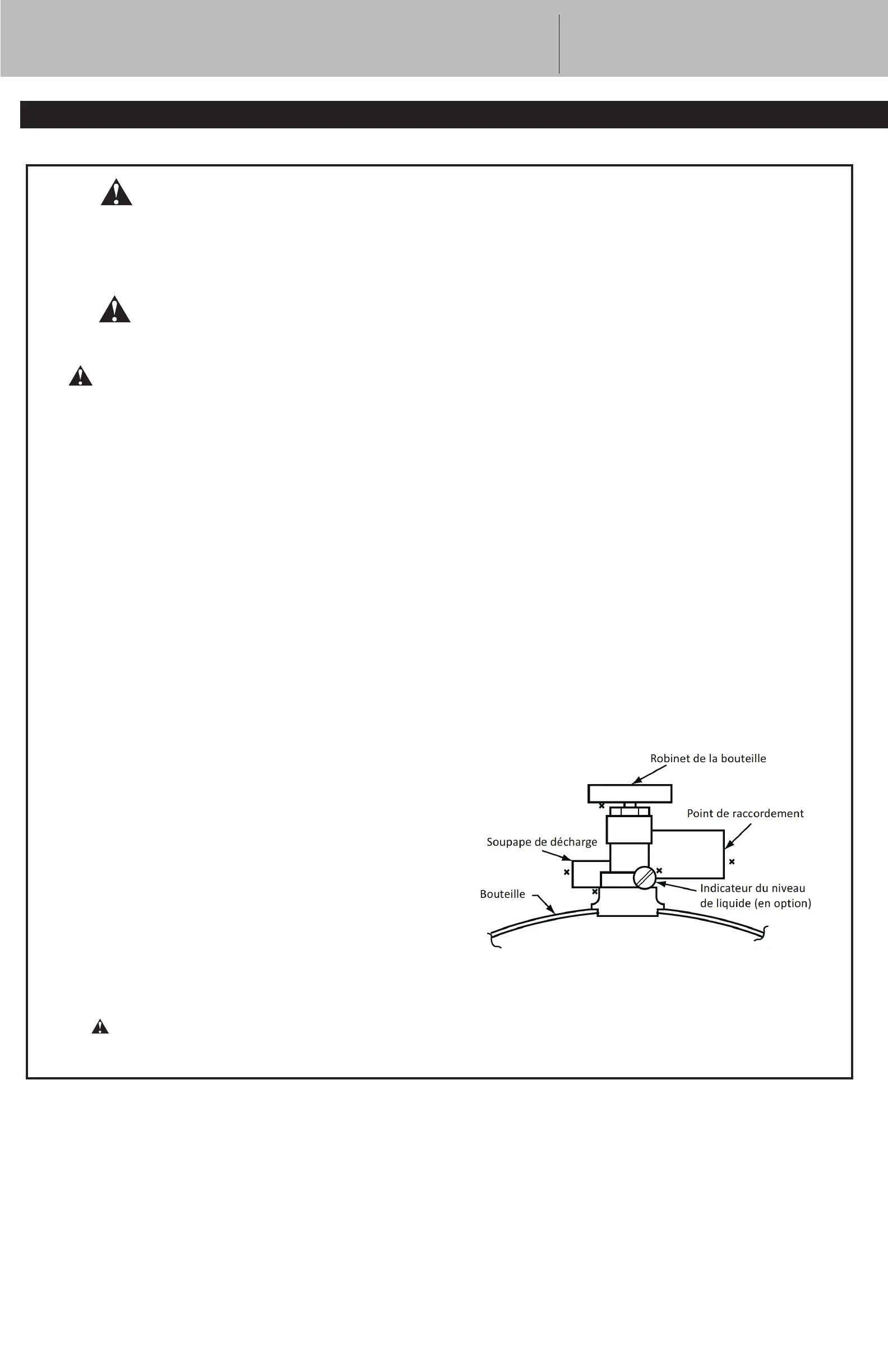 • Ne pas utiliser, entreposer ni transporter une bouteille si