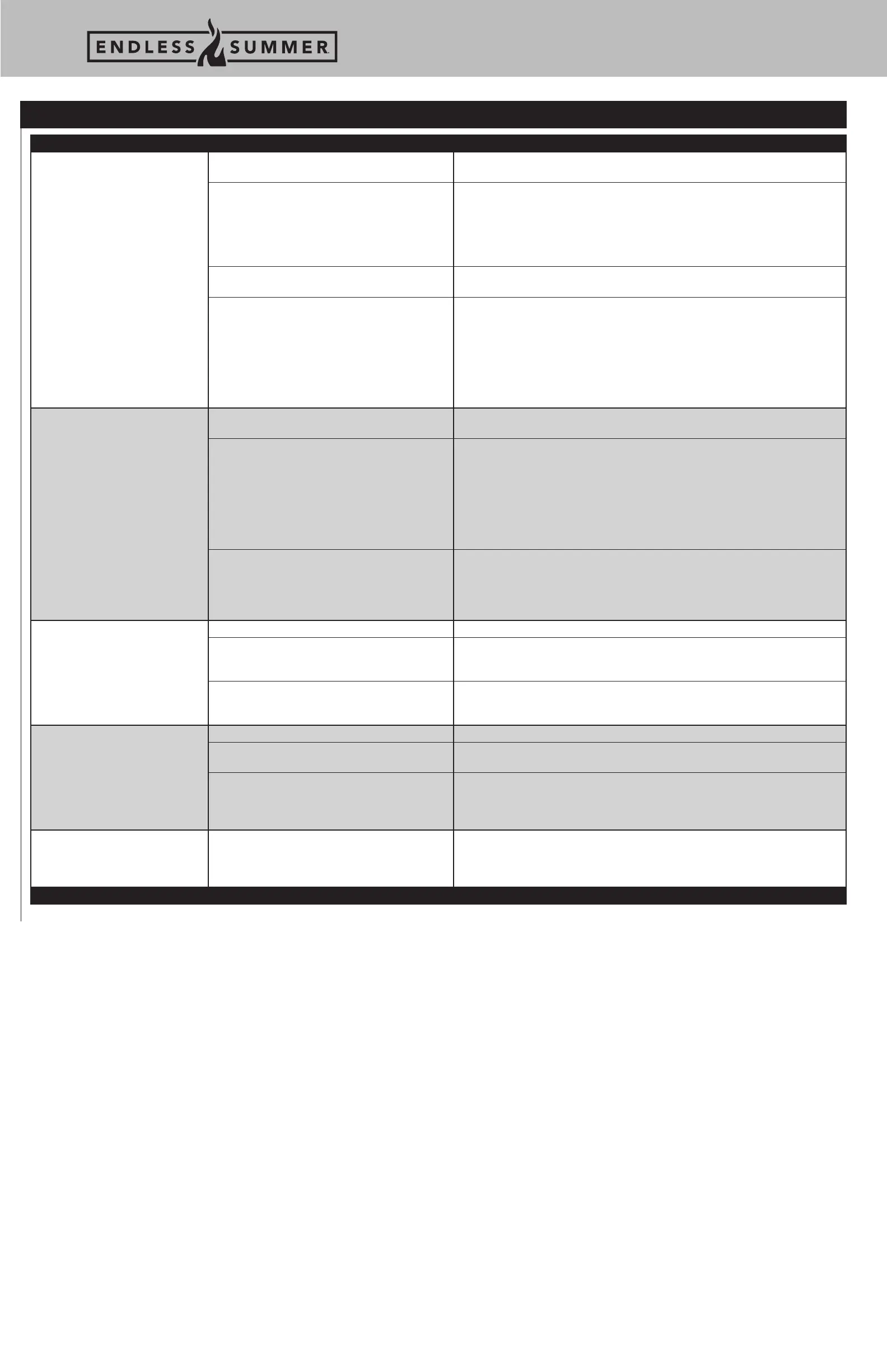 La bouteille de propane est vide ou presque vide Échangez, remplissez ou remplacez la bouteille de propane.